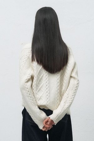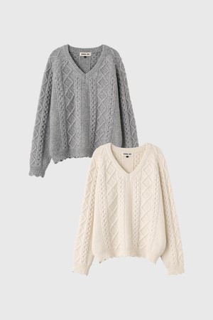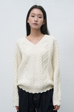 [25FW] WOMAN 스캘럽 케이블 브이넥 풀오버 [2COL] / WBE4L05556