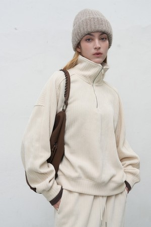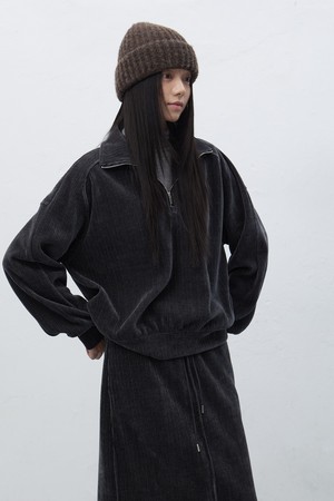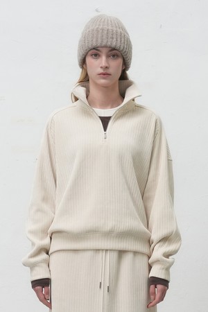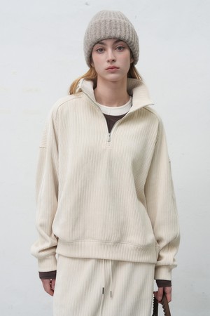 [25FW] WOMAN 리브드 벨로아 루즈핏 하프집업 [2COL] / WBE4L51521