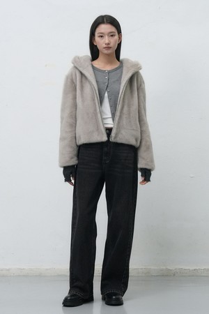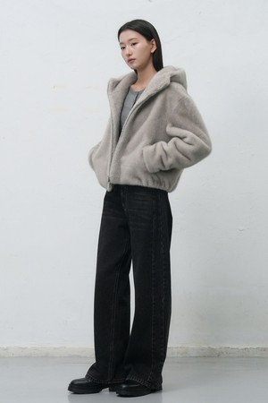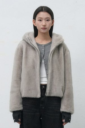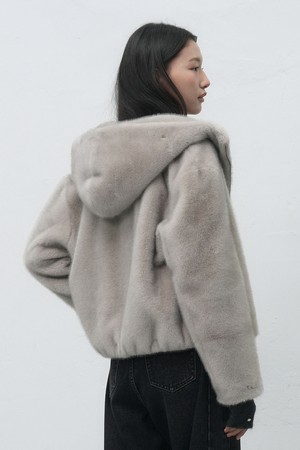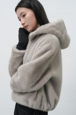 [25FW] WOMAN 하이넥 페이크 퍼 후드 집업 [2COL] / WBE4L07538