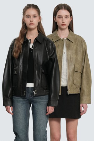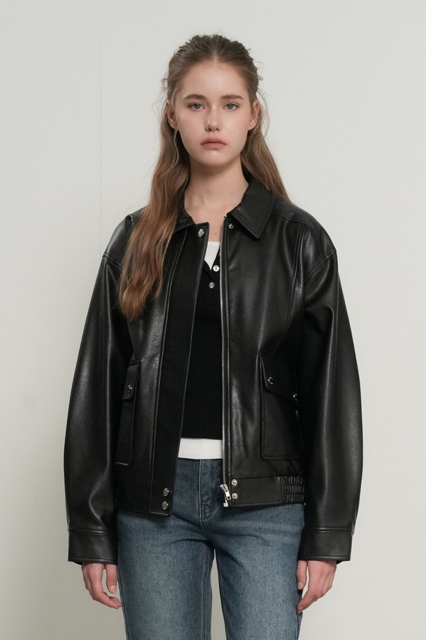 [26SS] WOMAN 페이크 레더 포켓 블루종 점퍼 [2COL] / GF1LJK502