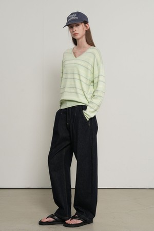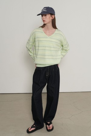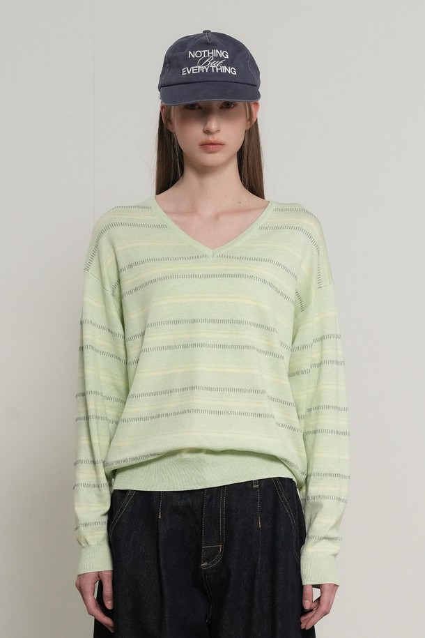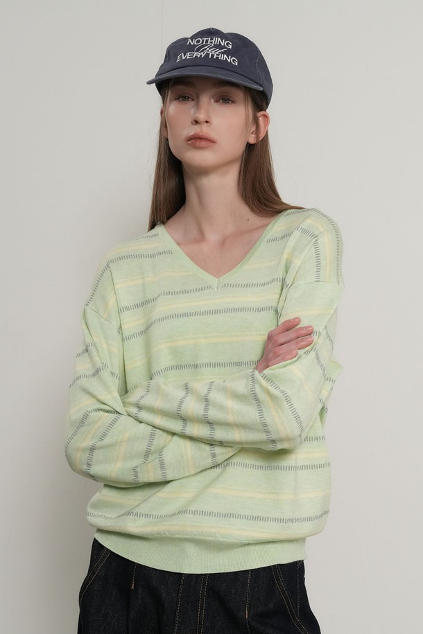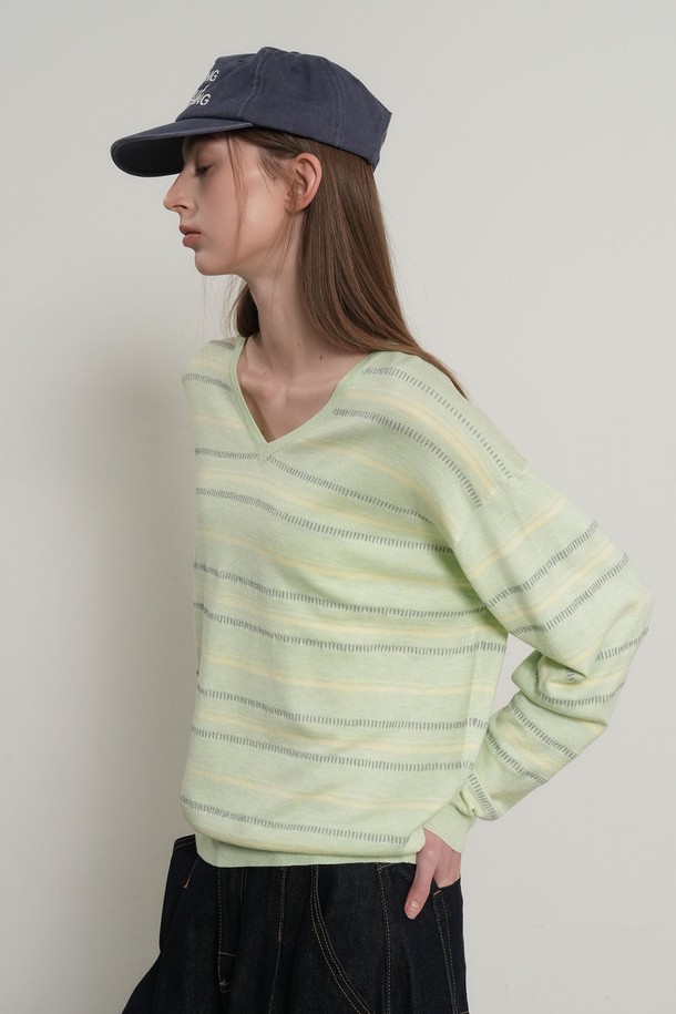 WOMAN 믹스 스트라이프 브이넥 풀오버 [3COL] / GF1LKP501