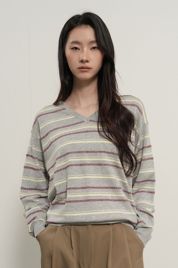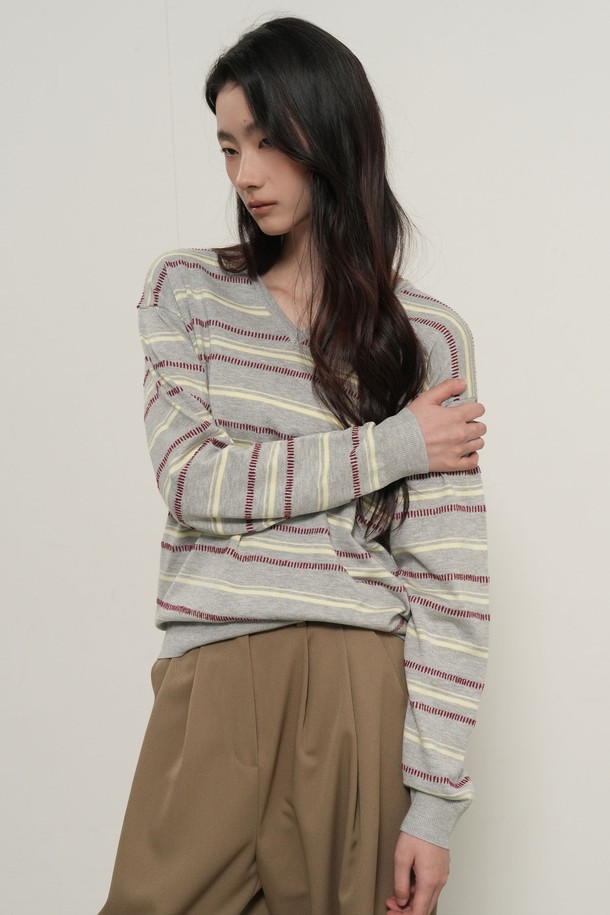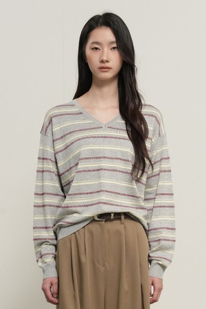 WOMAN 믹스 스트라이프 브이넥 풀오버 [3COL] / GF1LKP501