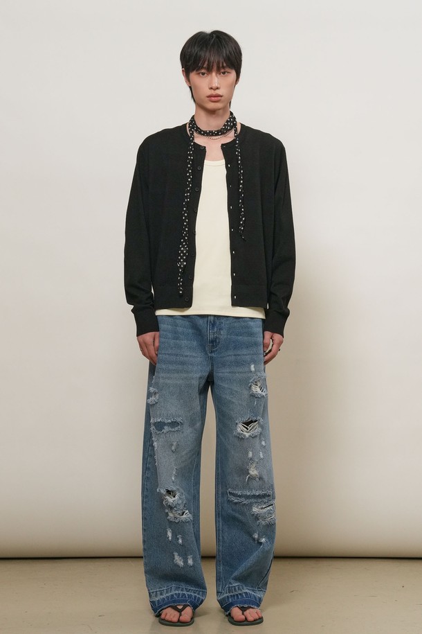 [26SS] MAN 스티치 크루넥 니트 가디건 [3COL] / GF1MKC008