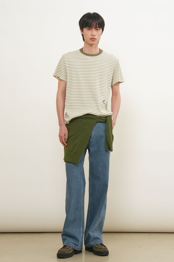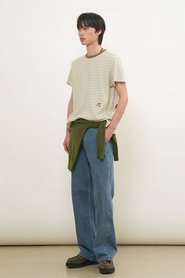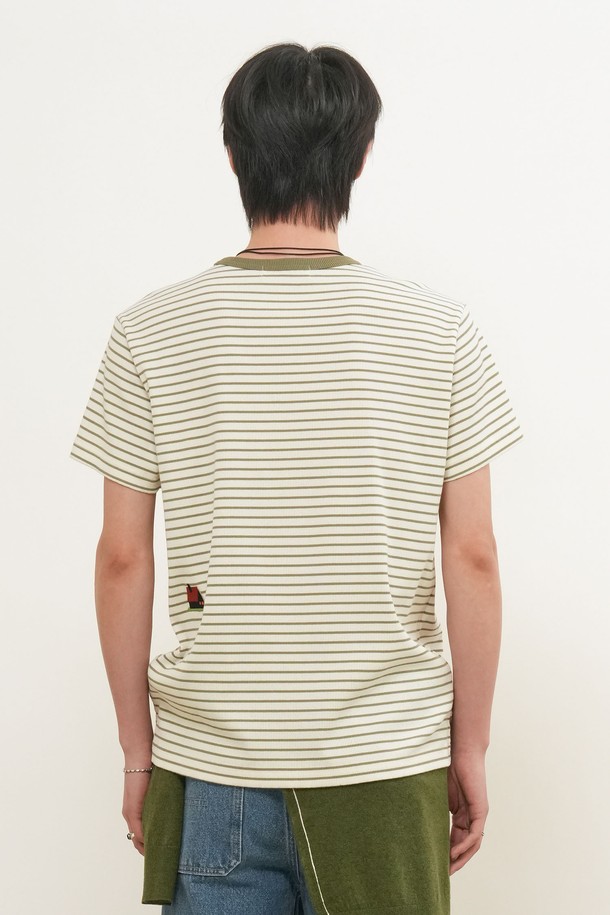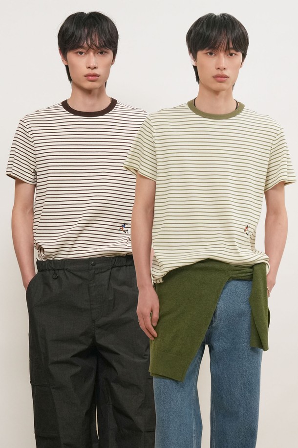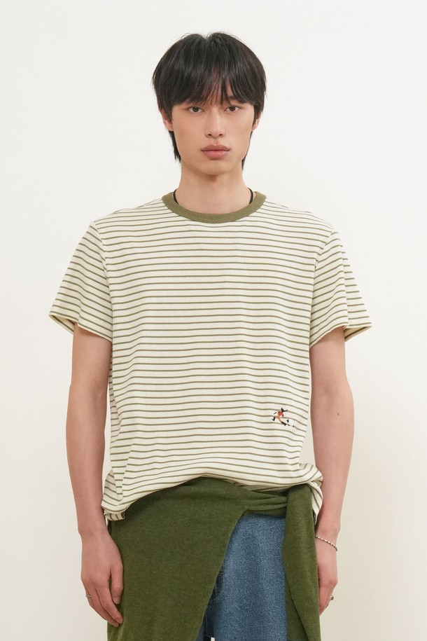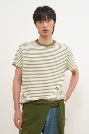 [26SS] MAN 미니멀 자수 스트라이프 반팔티 [2COL] / GF1MTS006