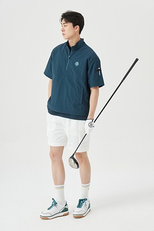 (M) Stretch Woven Collar Pullover Set Up