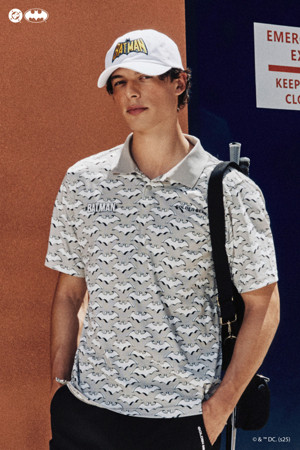 (M)(GOLDEN BEAR X BATMAN) 배트맨 패턴 반팔 피케 폴로 티셔츠