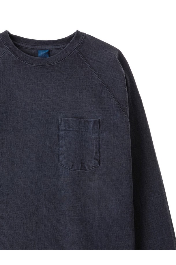 피그먼트 다잉 헤비코튼 포켓 긴팔 티셔츠 - 네이비