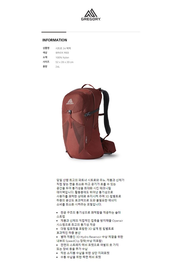 시트로24 - BRICK RED 등산가방,트레일러닝,당일산행(AO510013)