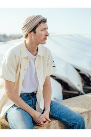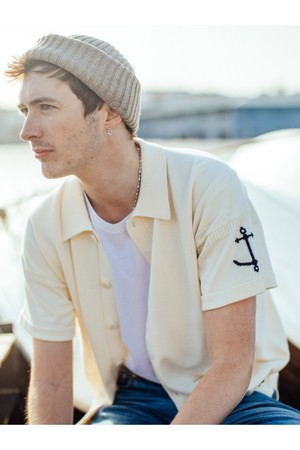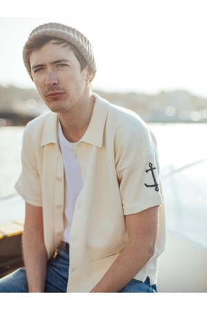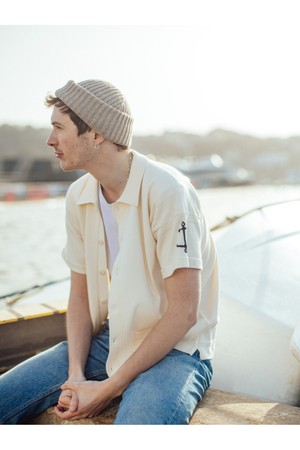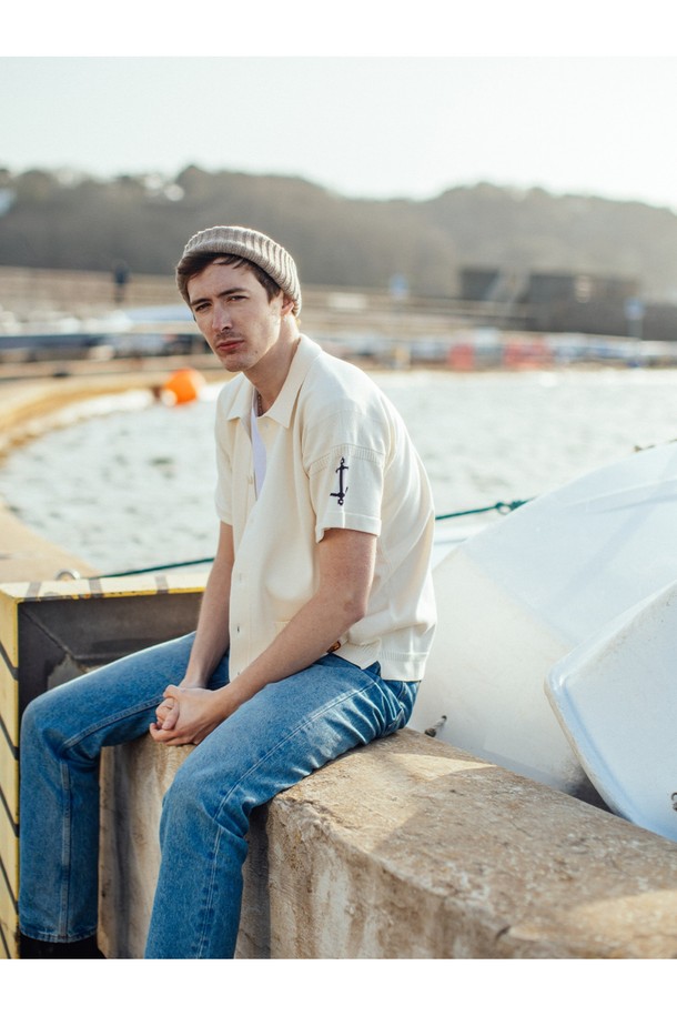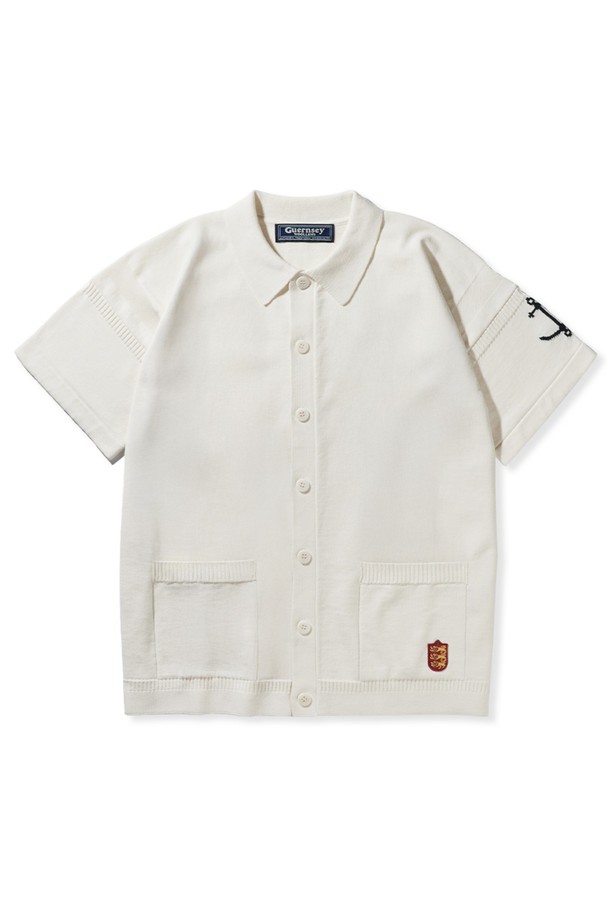 코튼 반팔 헤리티지 가디건 - 에크루