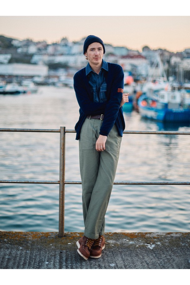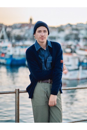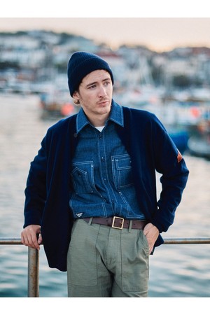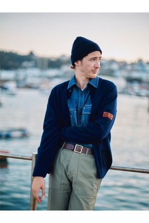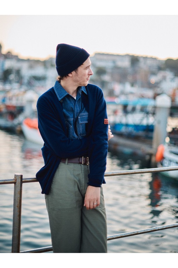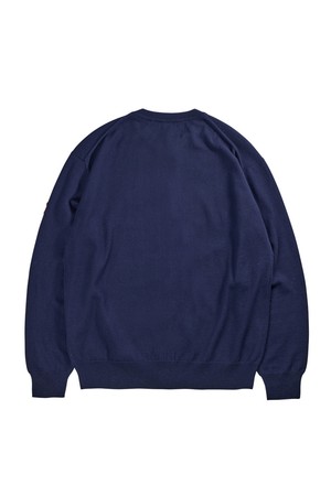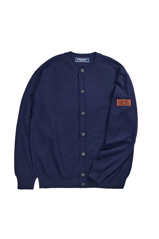 슈퍼 파인 메리노울 라운드넥 가디건 - 네이비