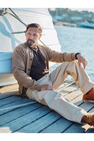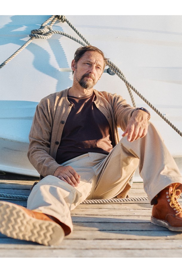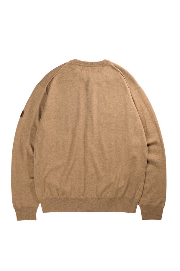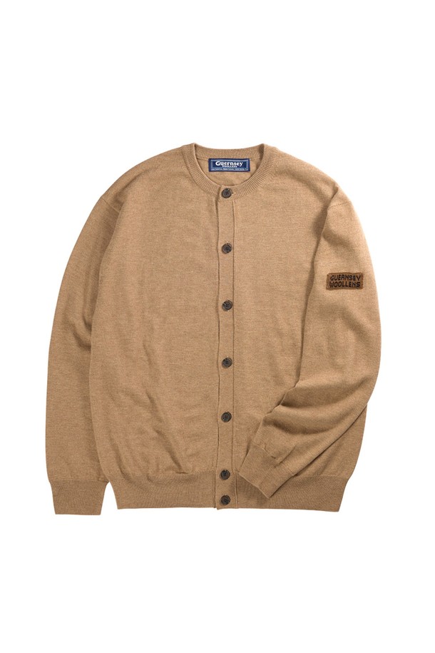슈퍼 파인 메리노울 라운드넥 가디건 - 카멜