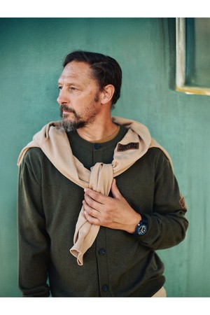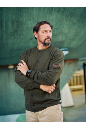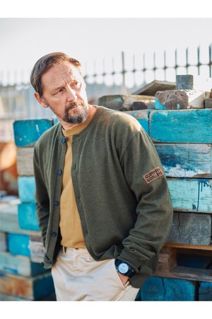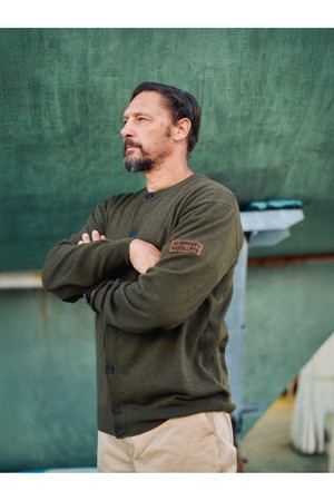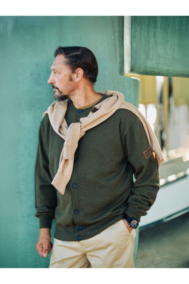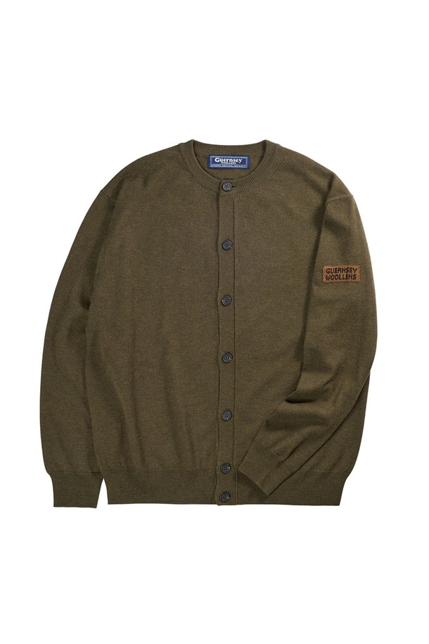 슈퍼 파인 메리노울 라운드넥 가디건 - 올리브