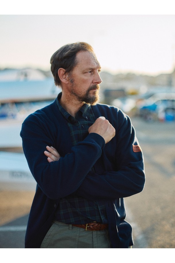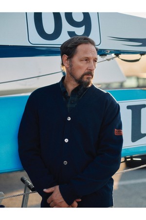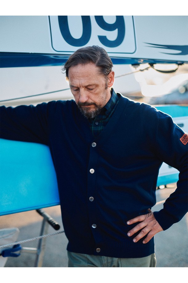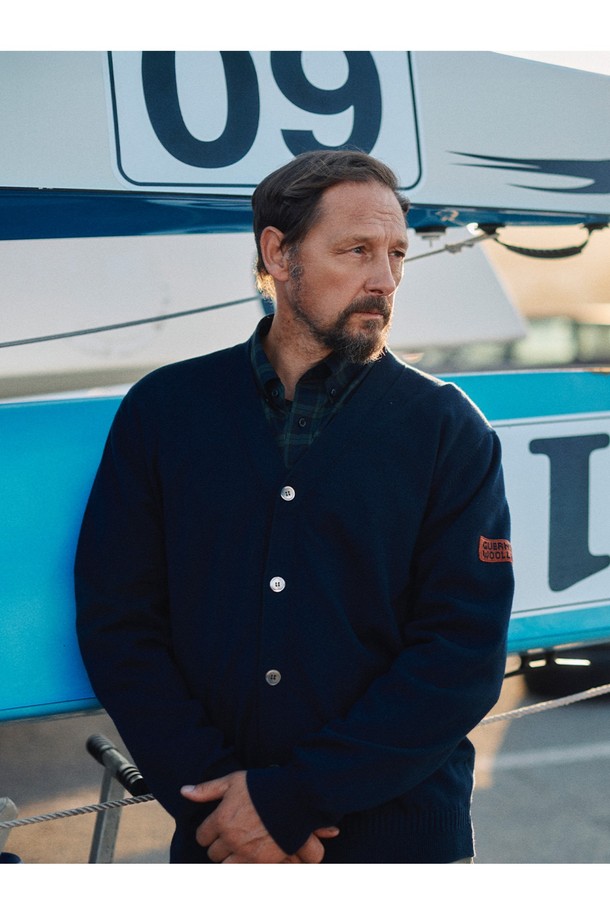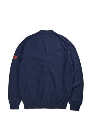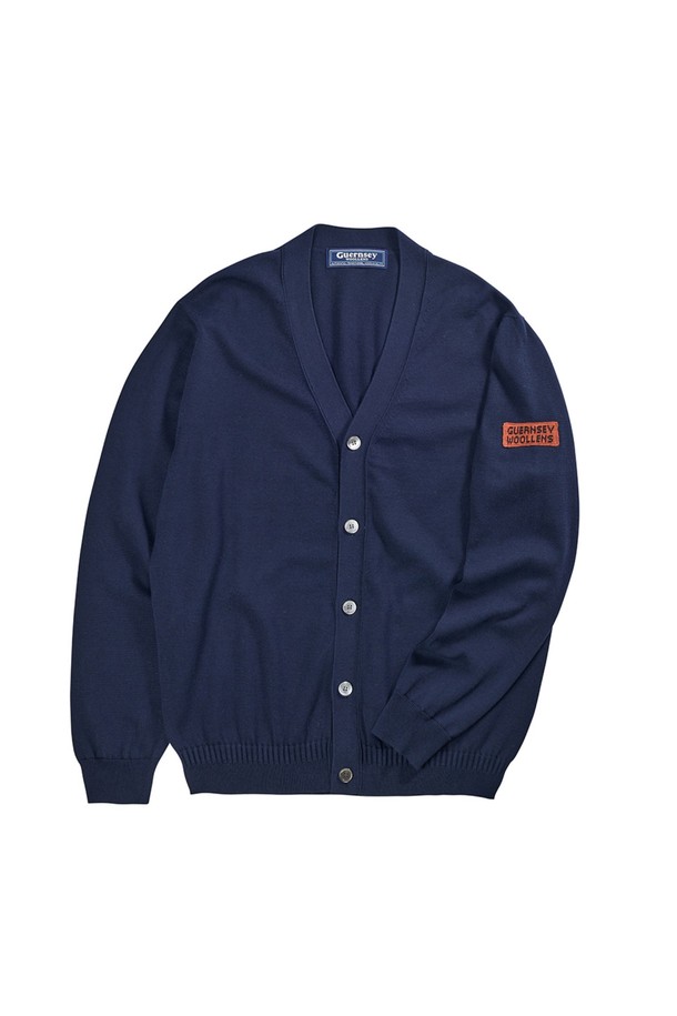 코튼 브이넥 가디건 - 네이비