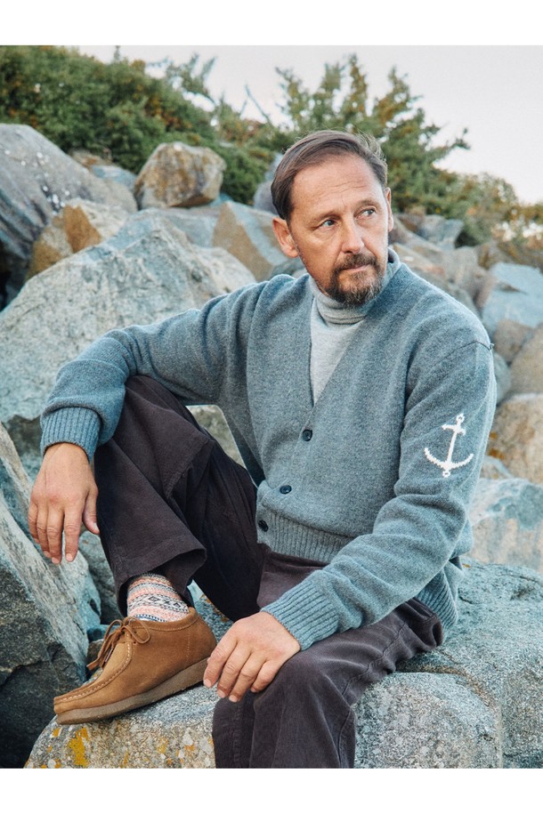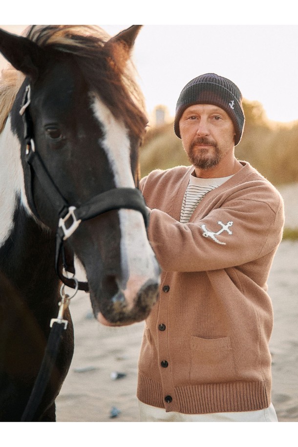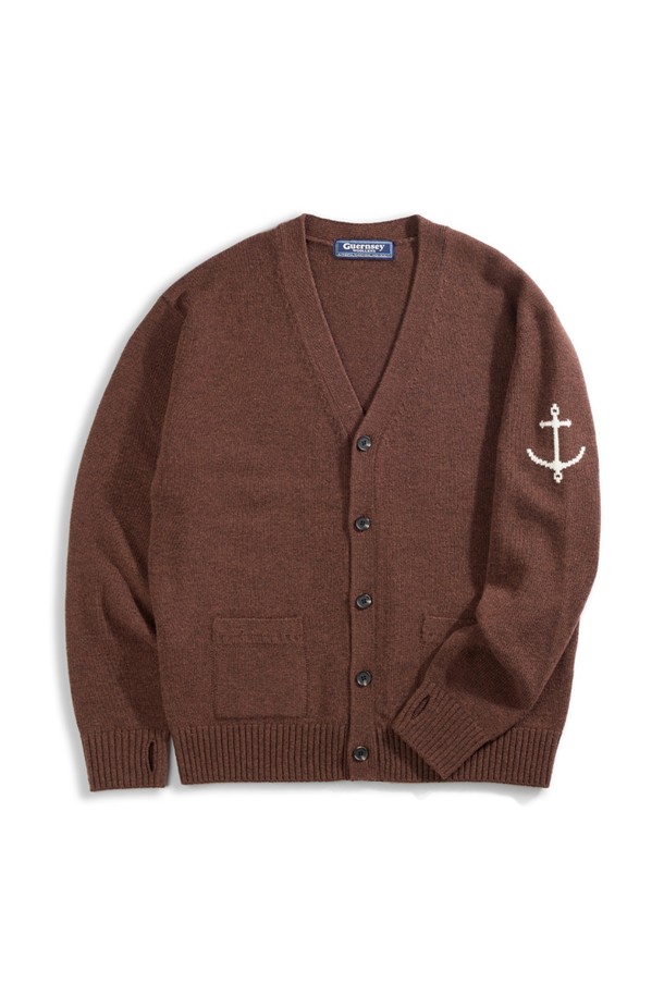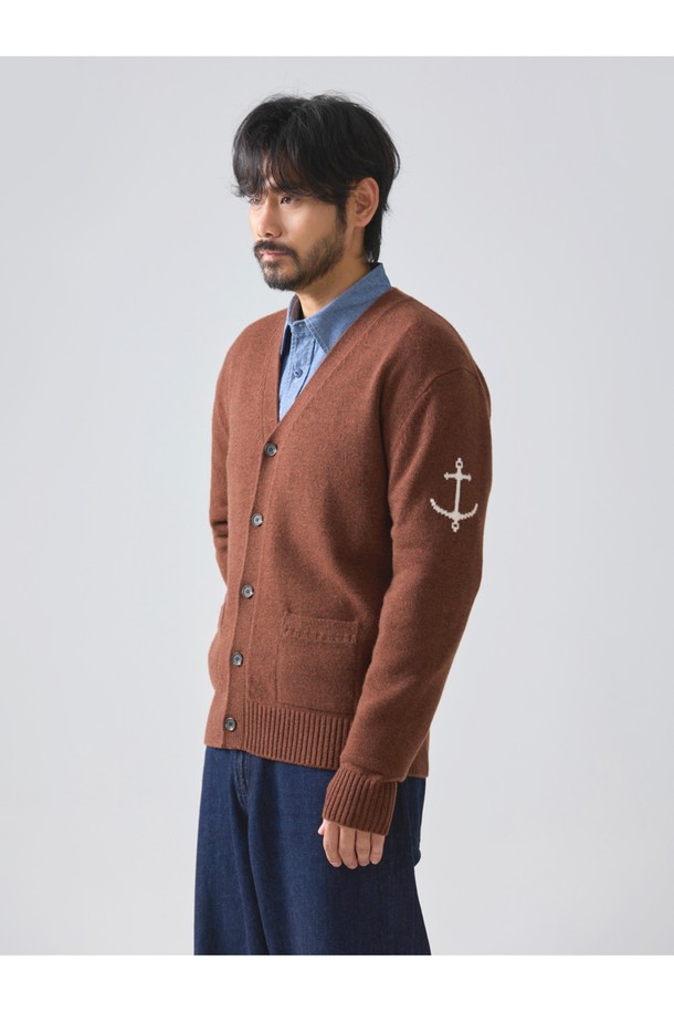 슈퍼 파인 메리노울 브이넥 가디건 - 체스트 넛