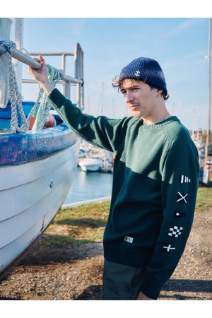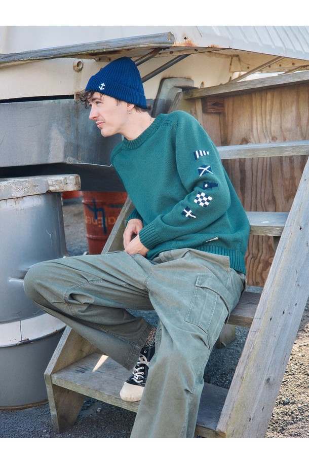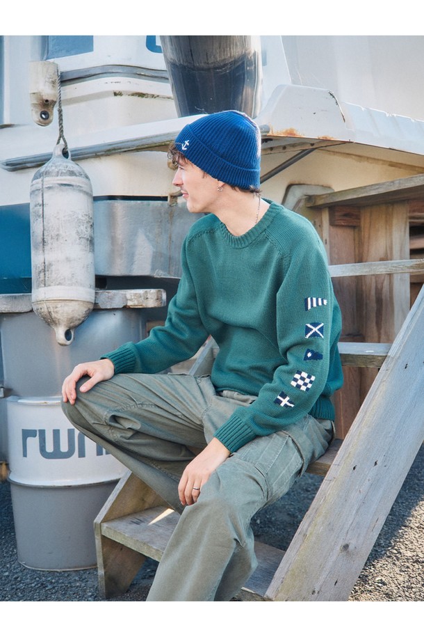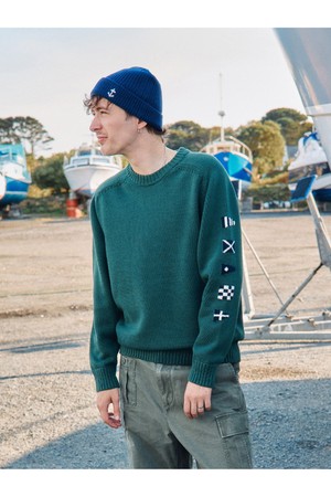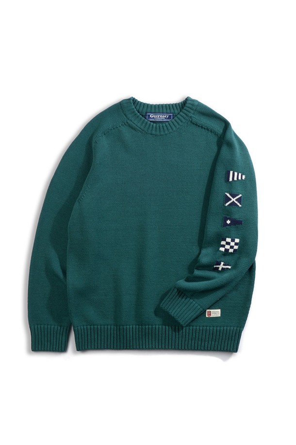 헤비코튼 시그널 플래그 스웨터 - 바질 그린