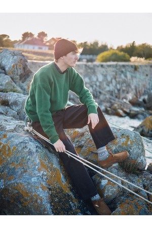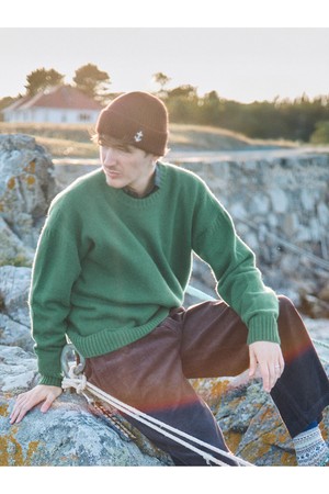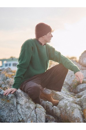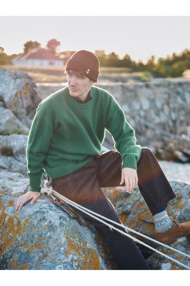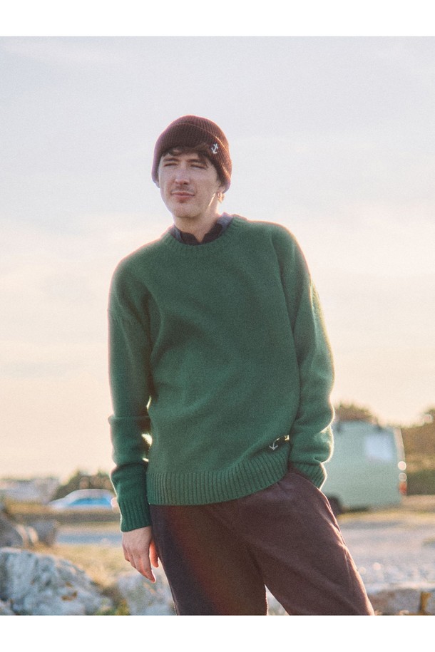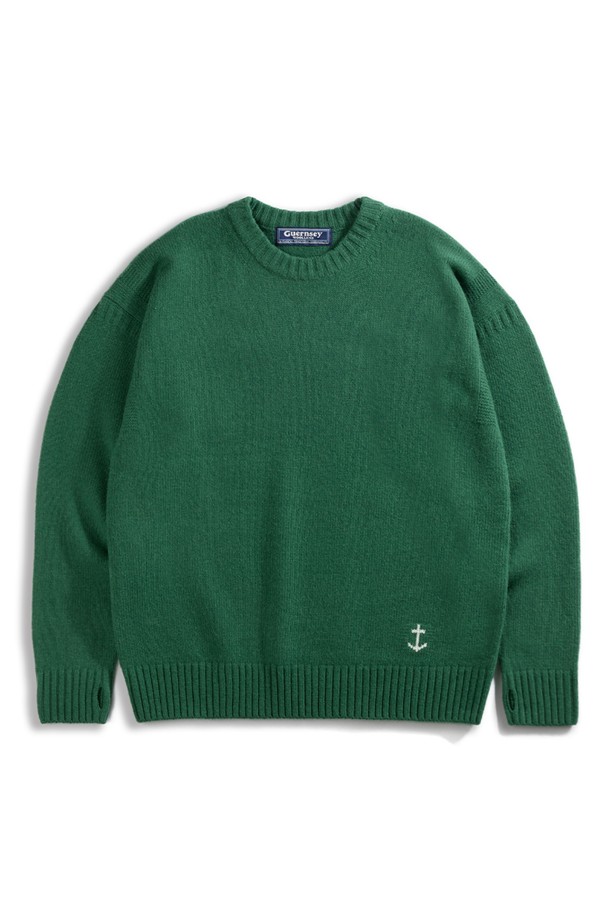 슈퍼 파인 메리노울 크루넥 건지 스웨터 - 그린