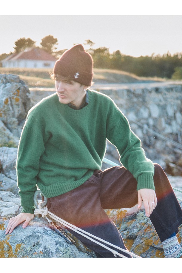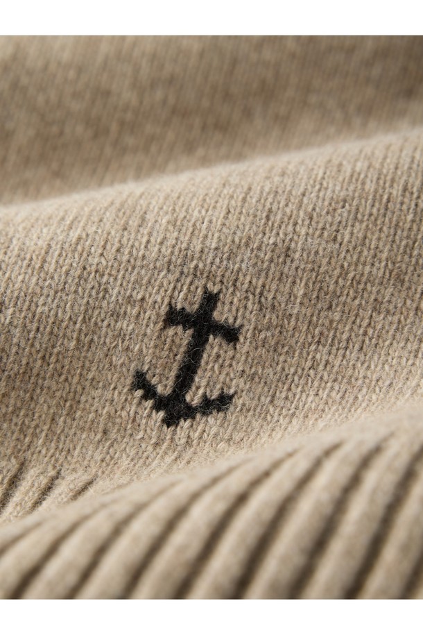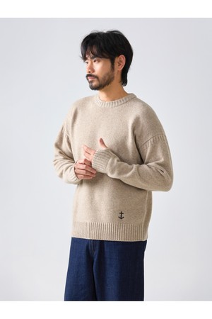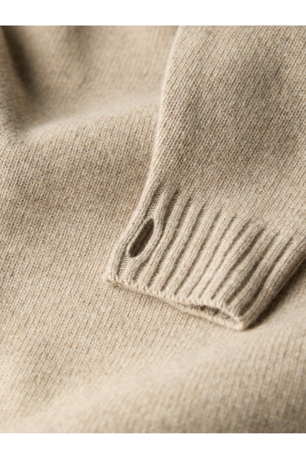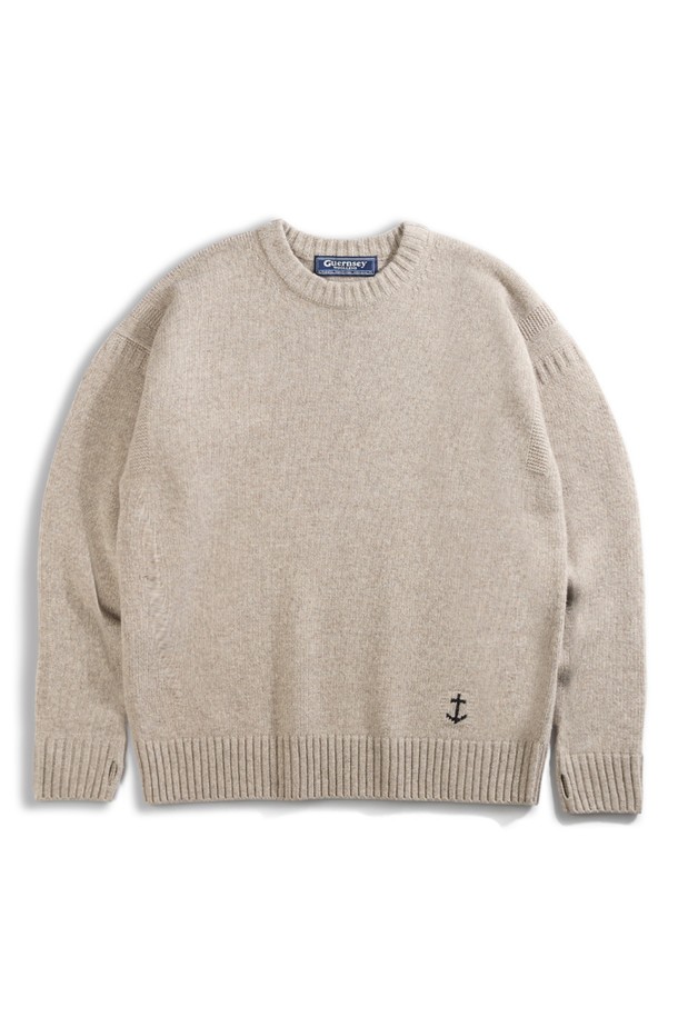 슈퍼 파인 메리노울 크루넥 건지 스웨터 - 베이지