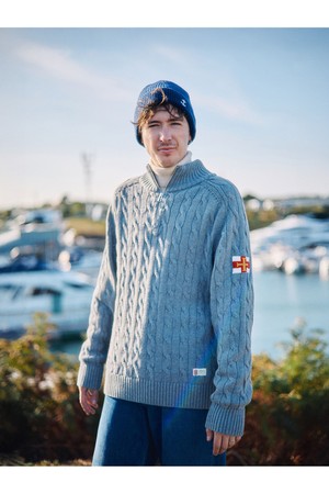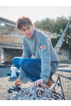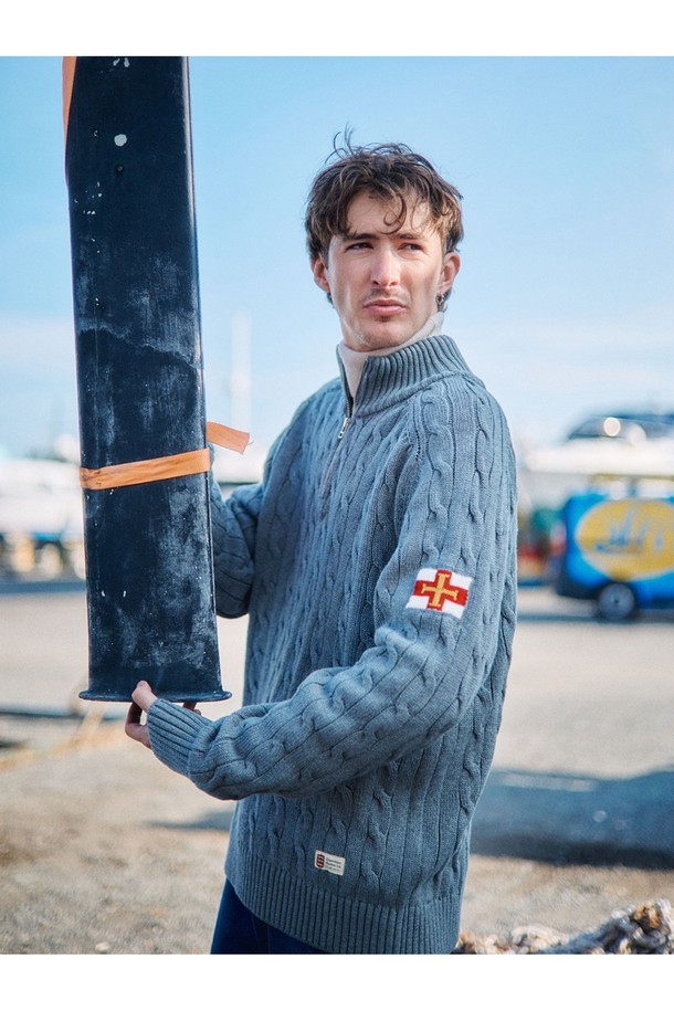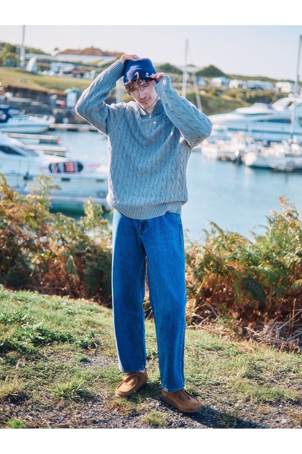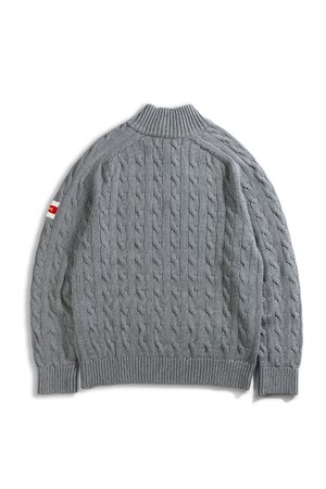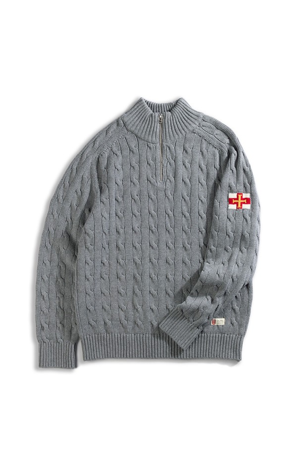 헤비코튼 케이블 하프 집업 스웨터 - 멜란지 그레이