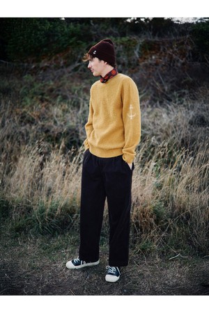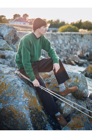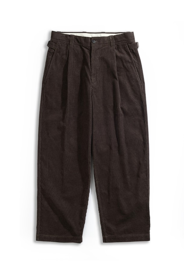 코듀로이 원턱 와이드 팬츠 - 차콜 브라운