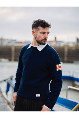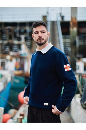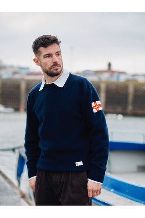 슈퍼 파인 메리노울 새들 스웨터 - 네이비