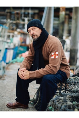 슈퍼 파인 메리노울 새들 스웨터 - 브라운