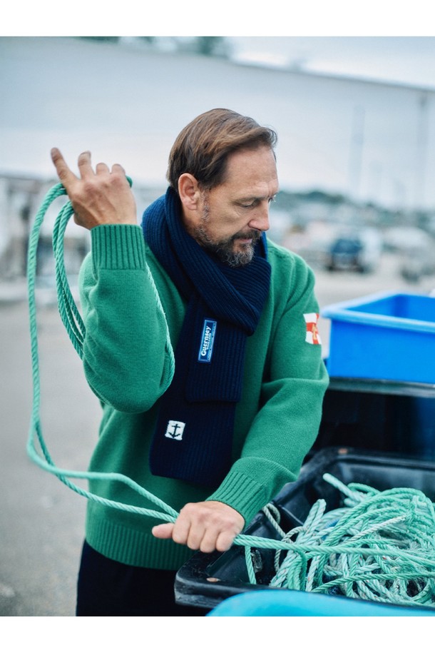 슈퍼 파인 메리노울 앵커 머플러 - 네이비