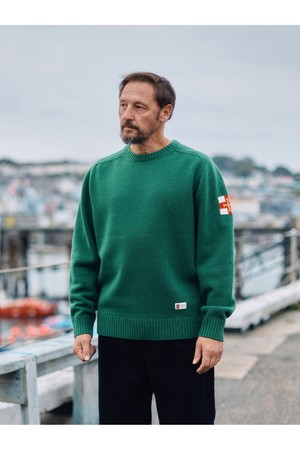 슈퍼 파인 메리노울 새들 스웨터 - 보틀 그린
