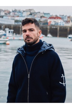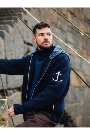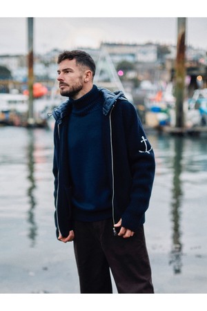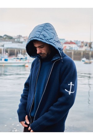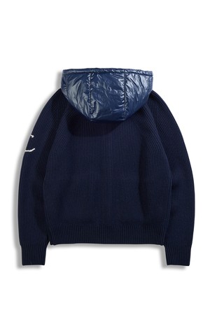 디테쳐블 패딩 후드 헤비 집업 스웨터 - 네이비