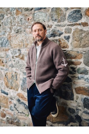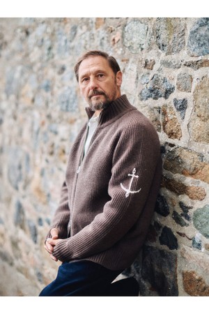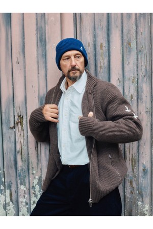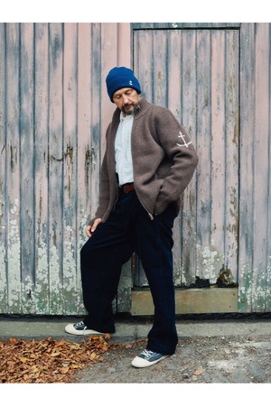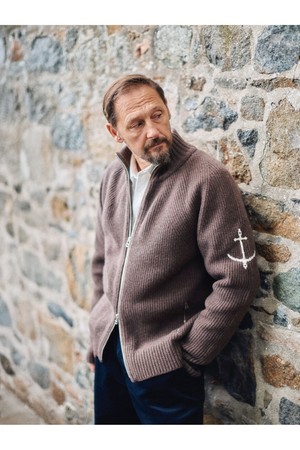 브리티쉬 립 투웨이 집업 스웨터 - 브라운