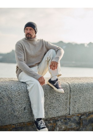 슈퍼 파인 메리노울 터틀넥 스웨터 - 베이지