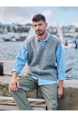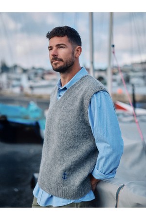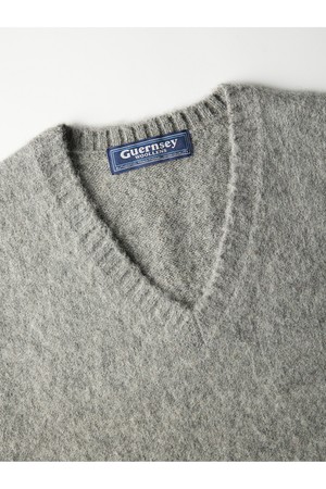 셔틀랜드울 브이넥 베스트 - 브러쉬드 그레이