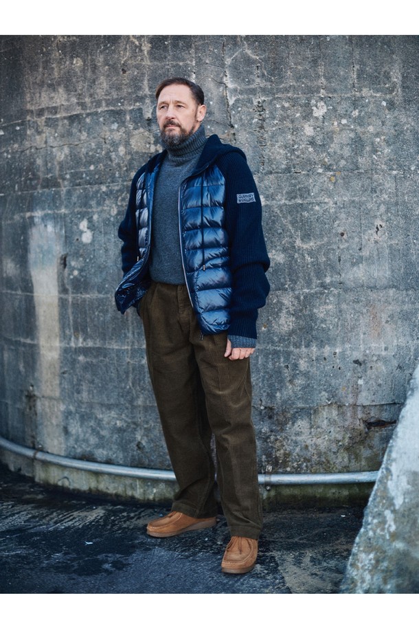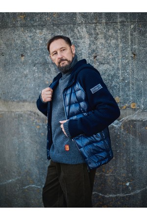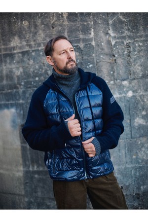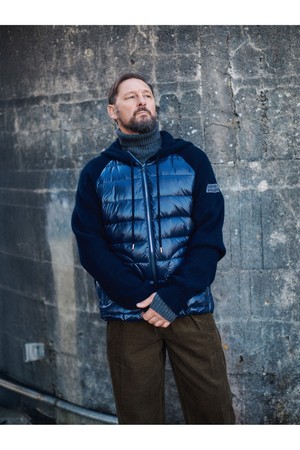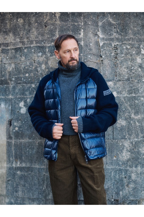 구스 다운 하이브리드 후드 집업 스웨터 - 네이비