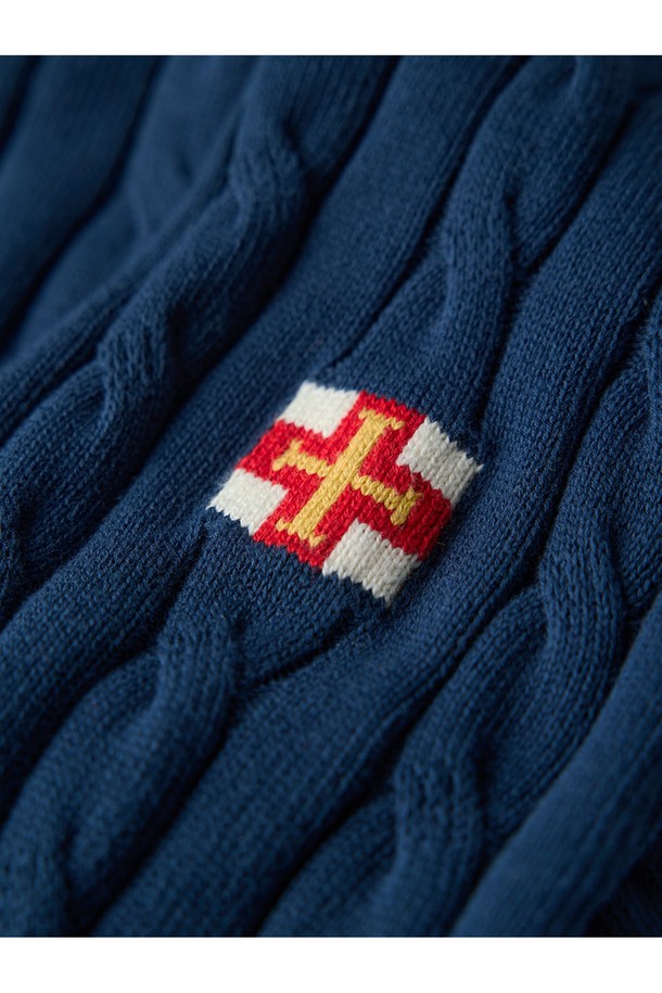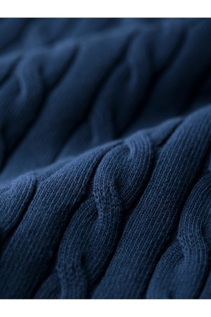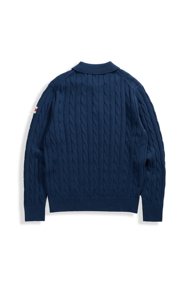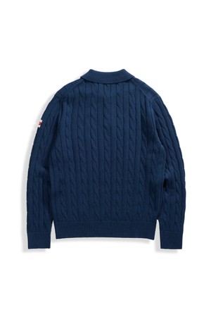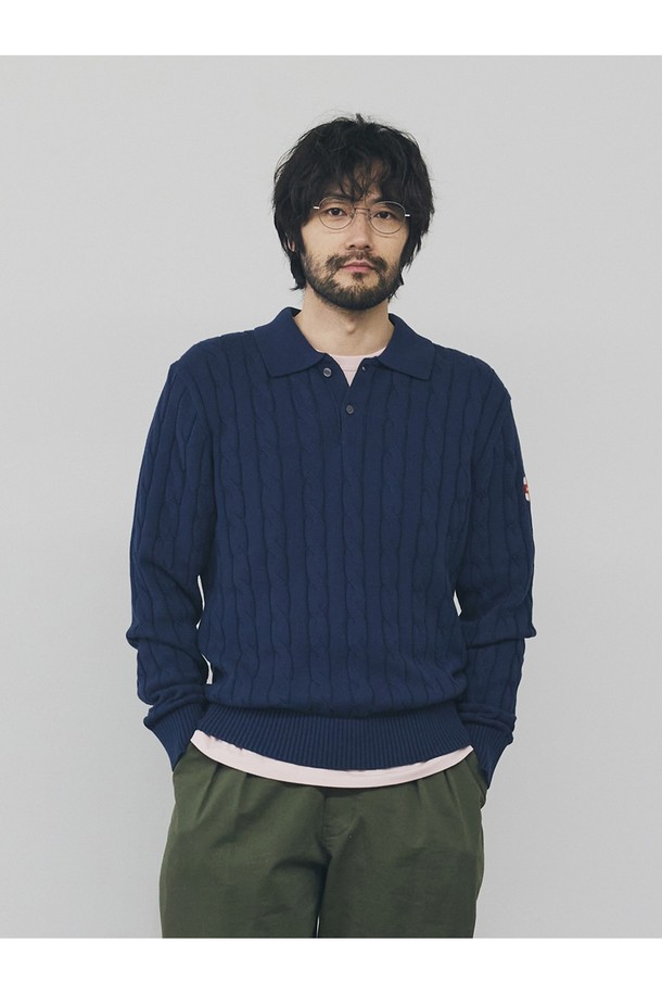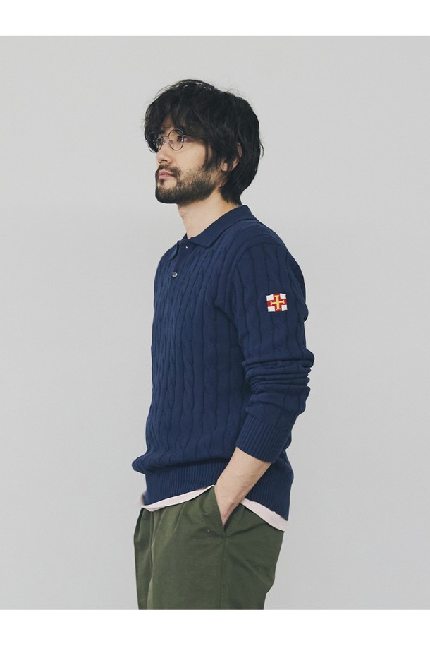 코튼 케이블 긴팔 카라 니트 - 네이비