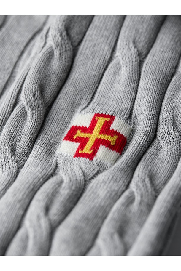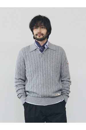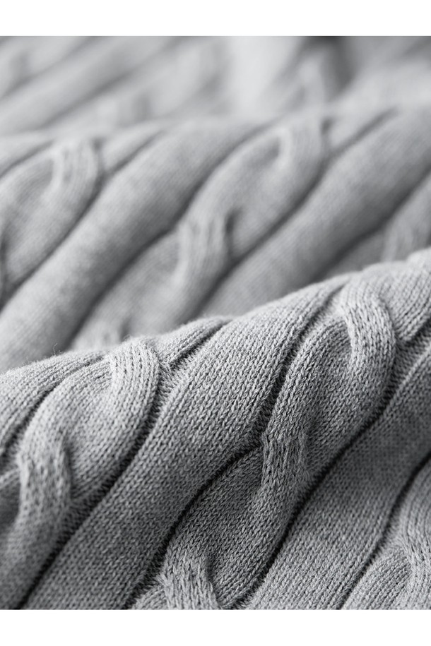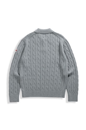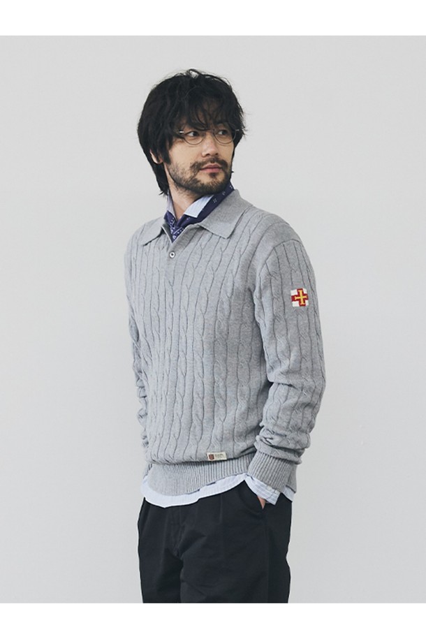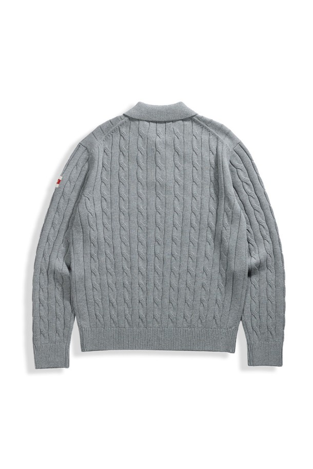 코튼 케이블 긴팔 카라 니트 - 멜란지 그레이