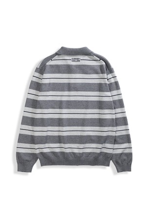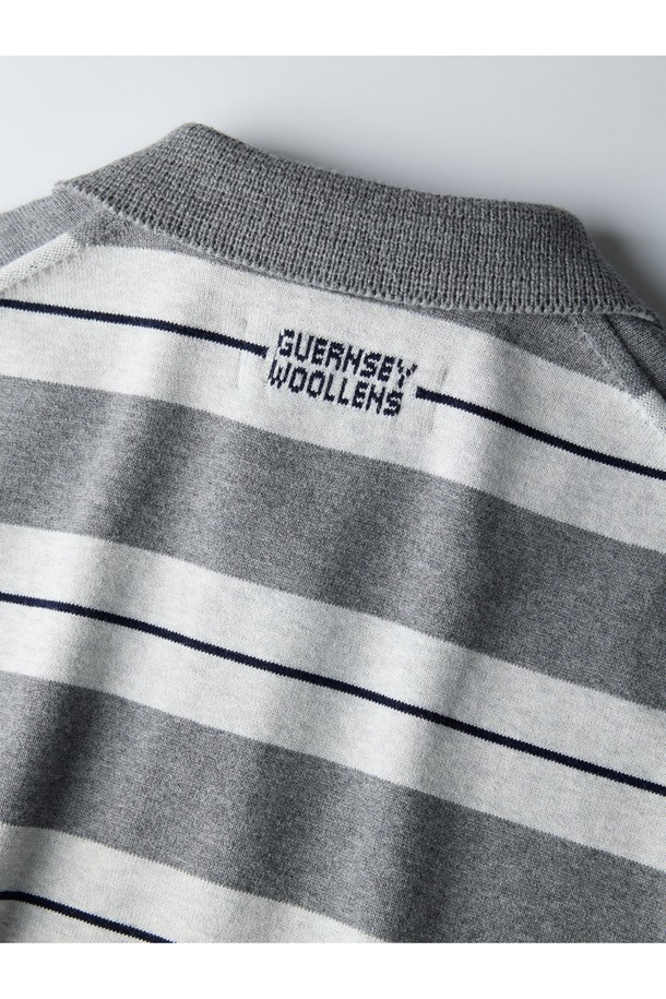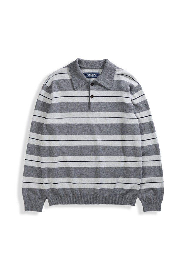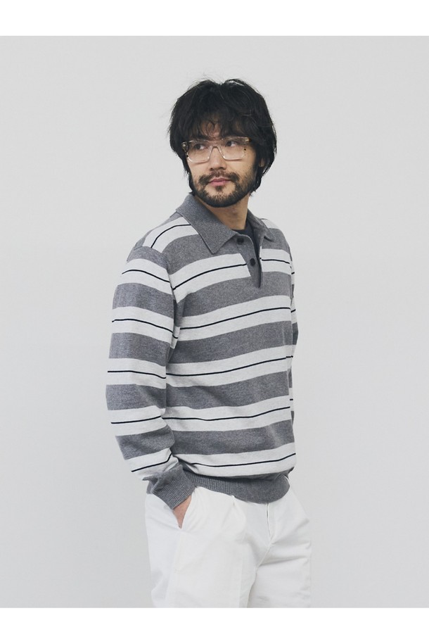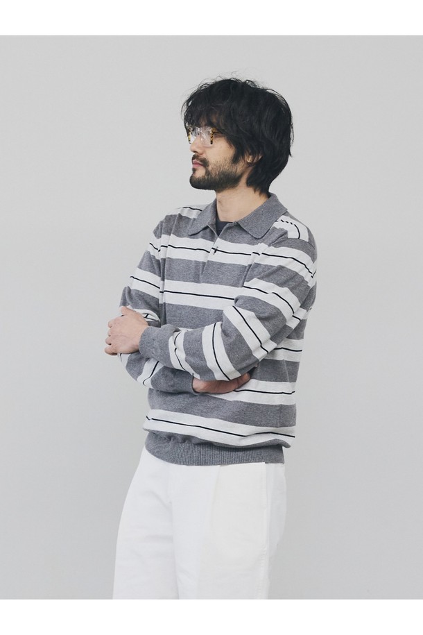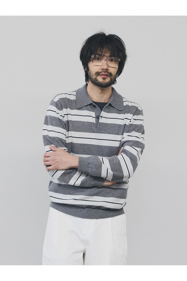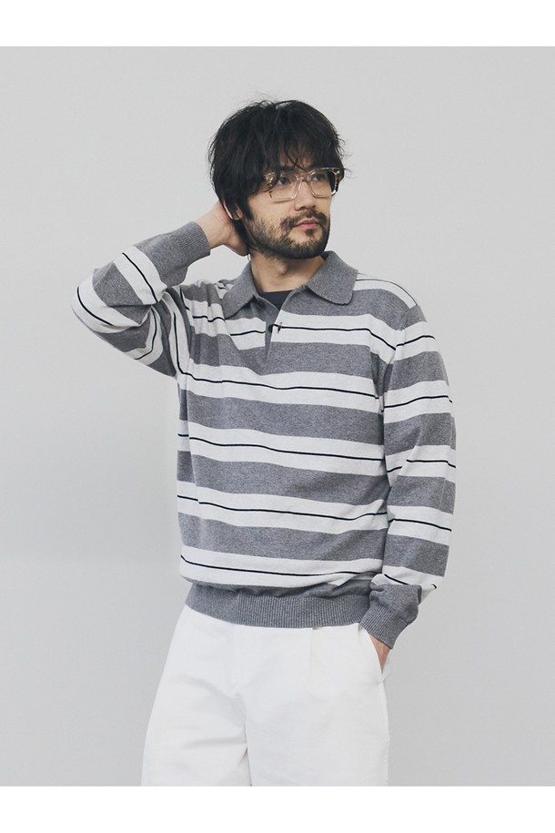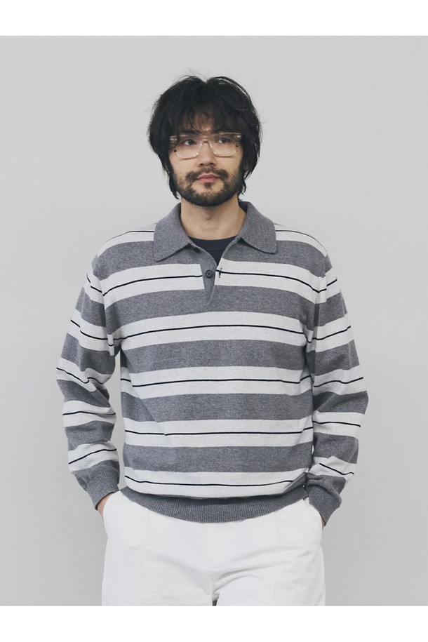 캐시미어 블렌드 스트라이프 카라 니트 - 그레이
