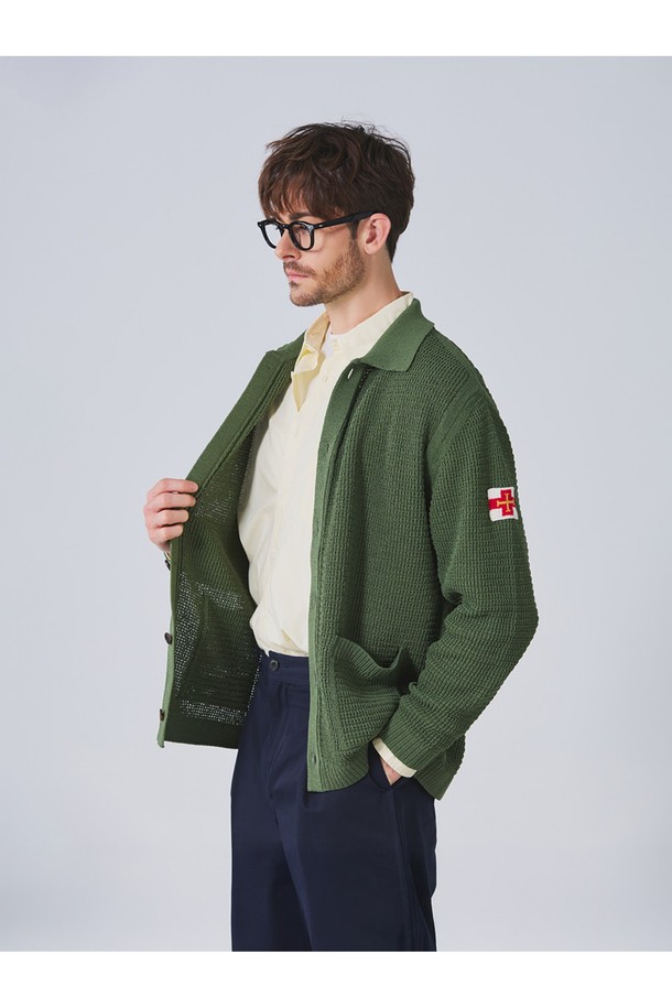 피셔맨 메쉬 카라 가디건 - 헌터 그린