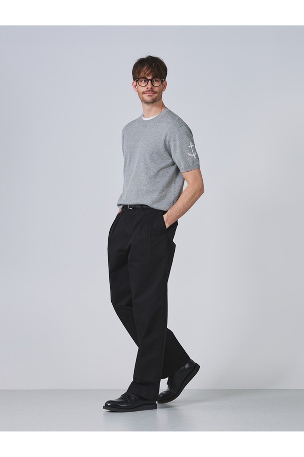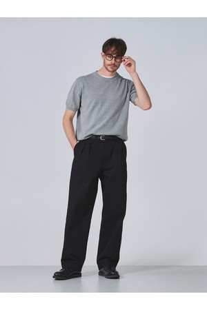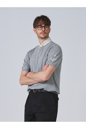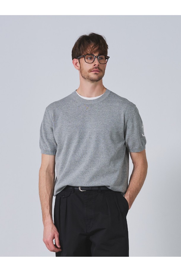 코튼 반팔 크루넥 니트 - 멜란지 그레이