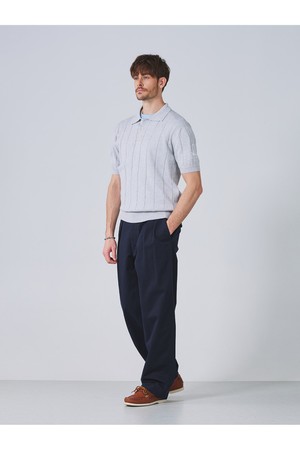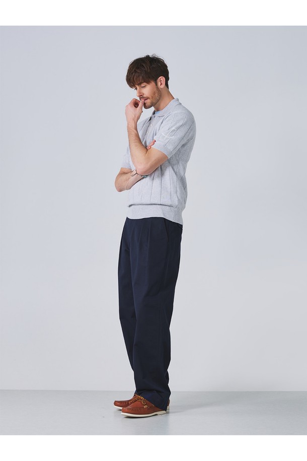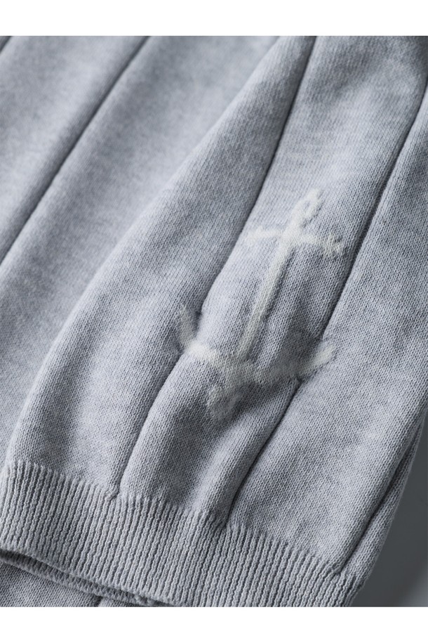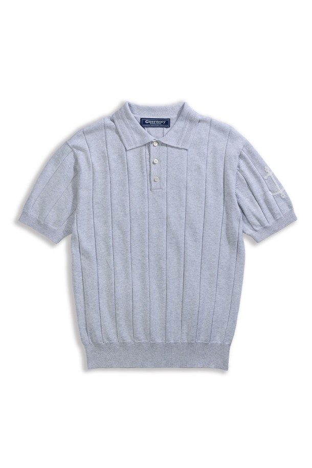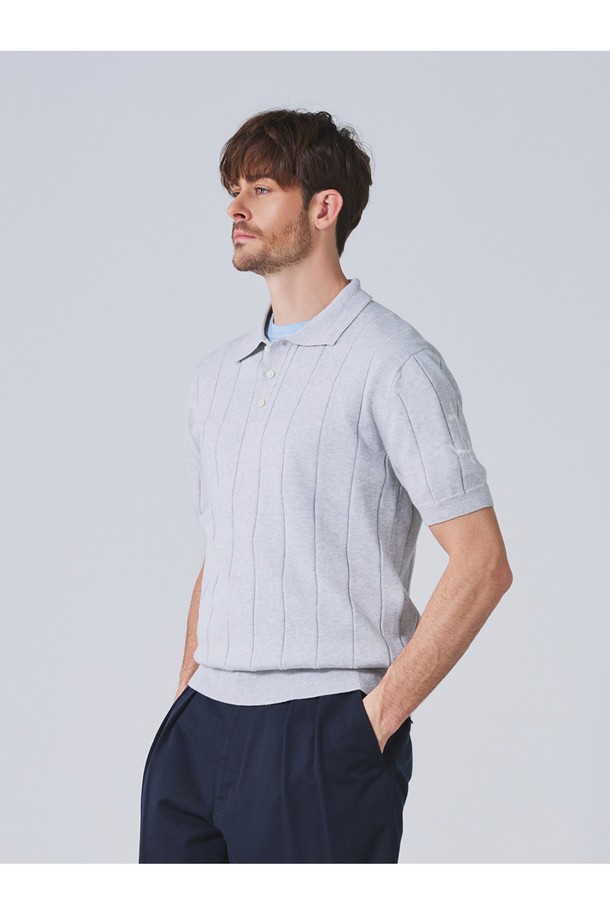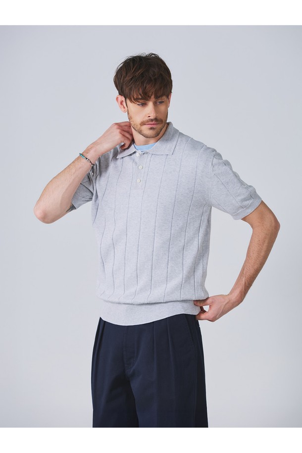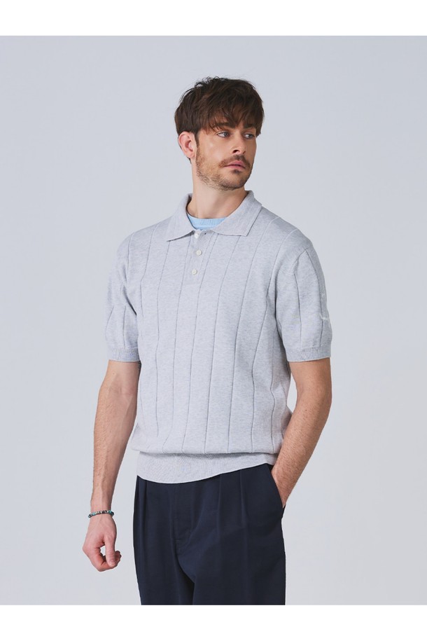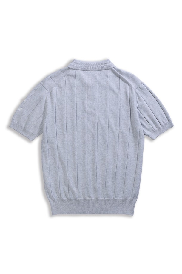 코튼 반팔 리브드 카라 니트 - 라이트 그레이