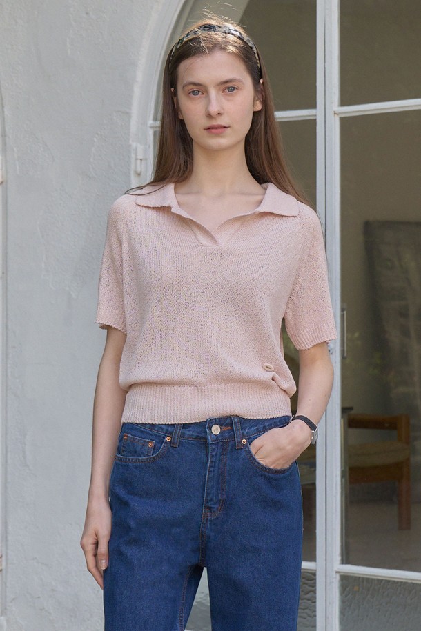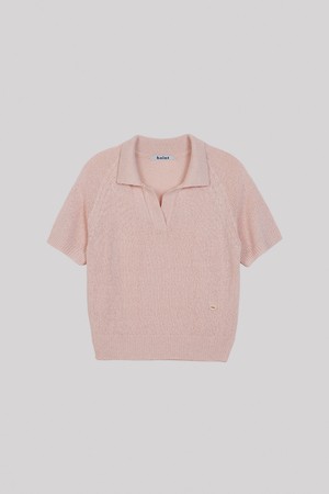 NIA OPEN COLLAR HALF KNIT_PINK