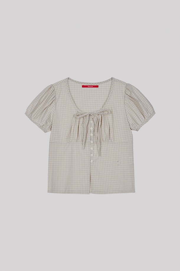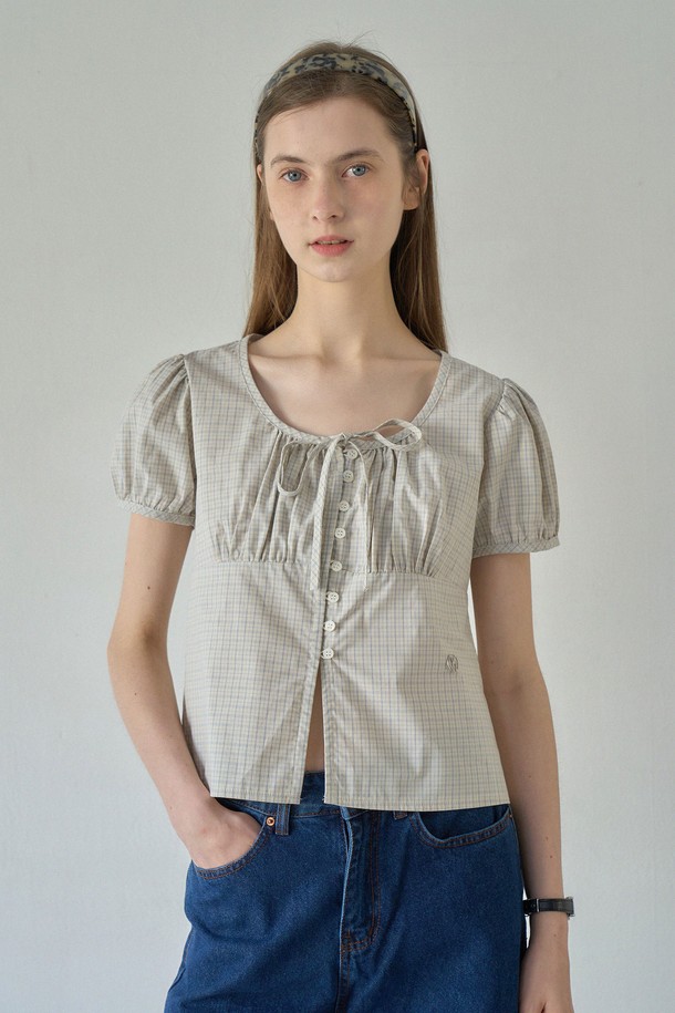 RUBI SHIRRING CHECK BLOUSE_BEIGE
