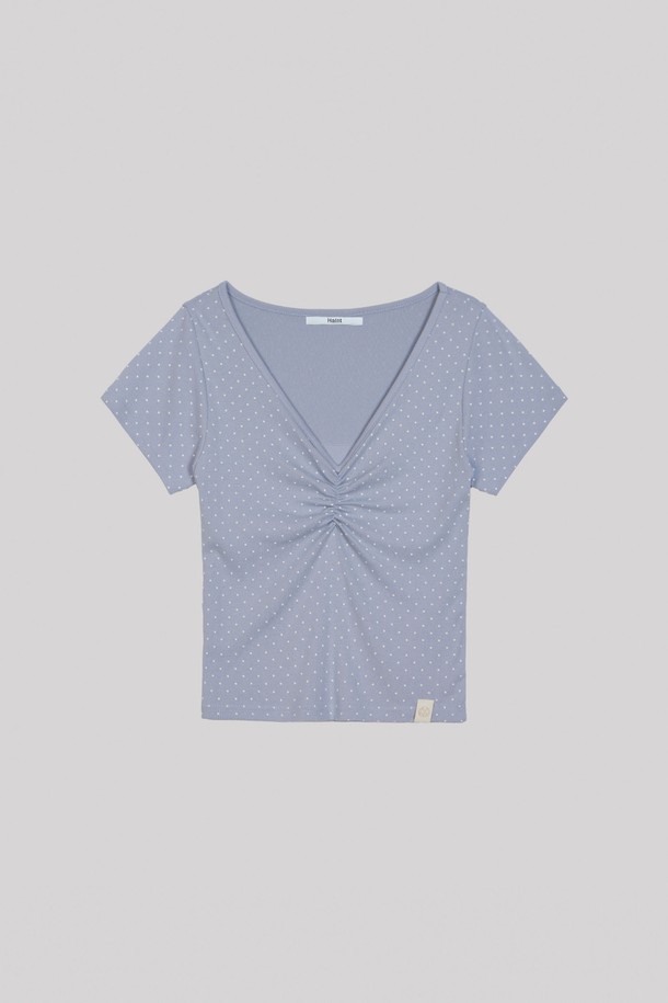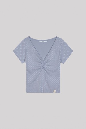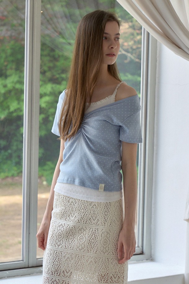 OFF SHOULDER DOT SHIRRING T_SKY BLUE