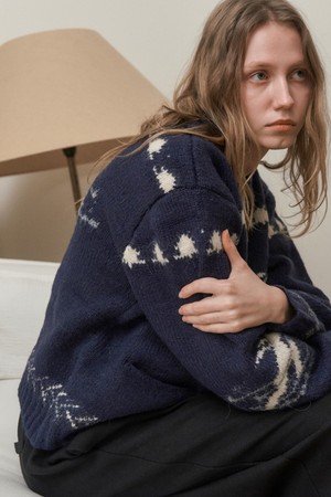 WINTER COWICHAN KNIT ZIP UP_NAVY