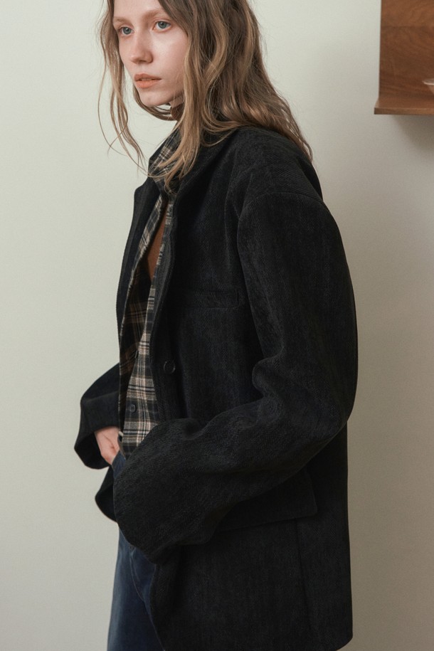 TWILL VELVET BLAZER JACKET_BLACK