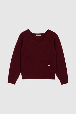 BRUSHED WIDE V-NECK KNIT_BURGANDY