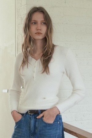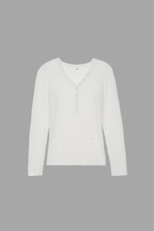 FEATHERY V-NECK SLIM FIT KNIT_IVORY