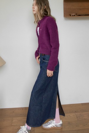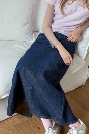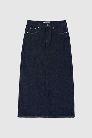 [FLEECE BONDING] NON-FADE DENIM LONG SKIRT_DARK BLUE