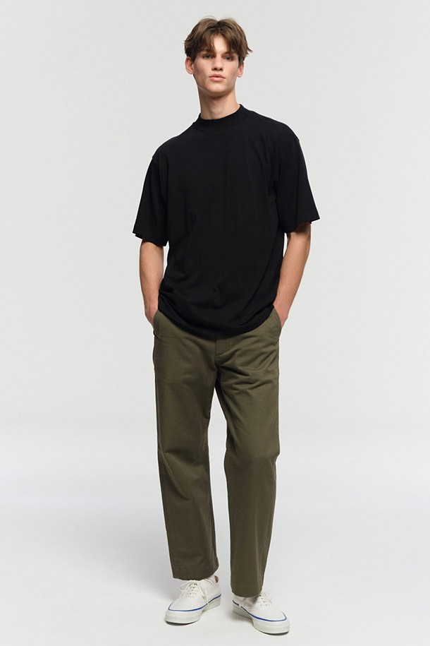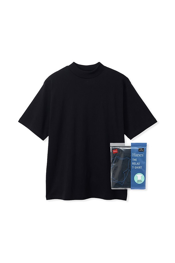 [HANES] 헤인즈 릴렉스 핏 모크넥 티셔츠 - BLACK