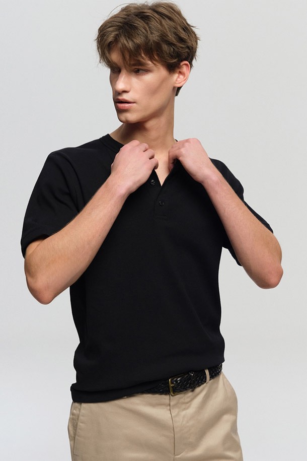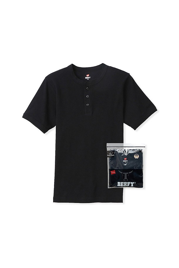 [HANES] 헤인즈 비피 립 헨리넥 티셔츠 - BLACK