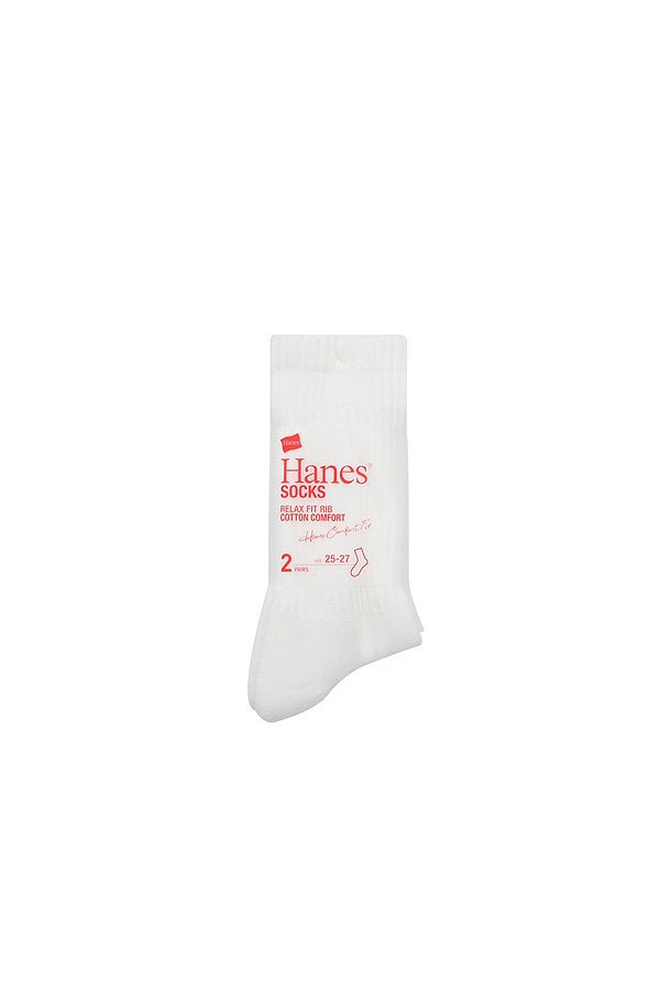 [HANES] 헤인즈 크루 삭스 2P - WHITE