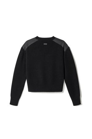 [WOMEN] 크루넥 우븐 어깨 패치 스웨터 - 블랙 HDW0003AKZBLK